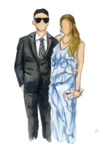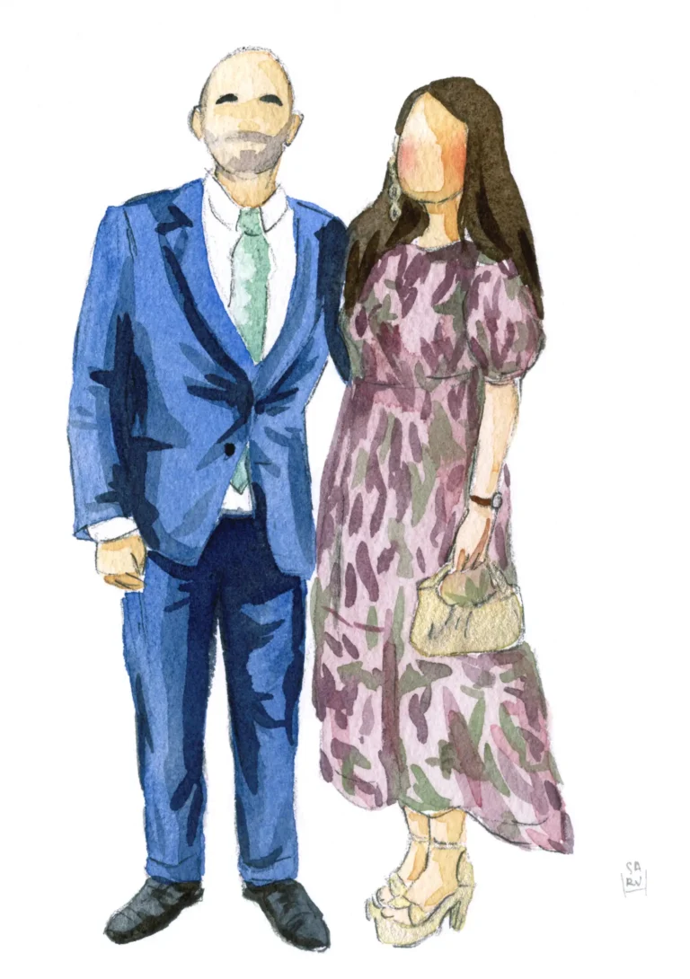 Además, para los novios, ofrezco una ilustración especial de mayor tamaño que las de los invitados. Esta puede realizarse en el mismo estilo o con un nivel de detalle más elaborado, según vuestras preferencias.
